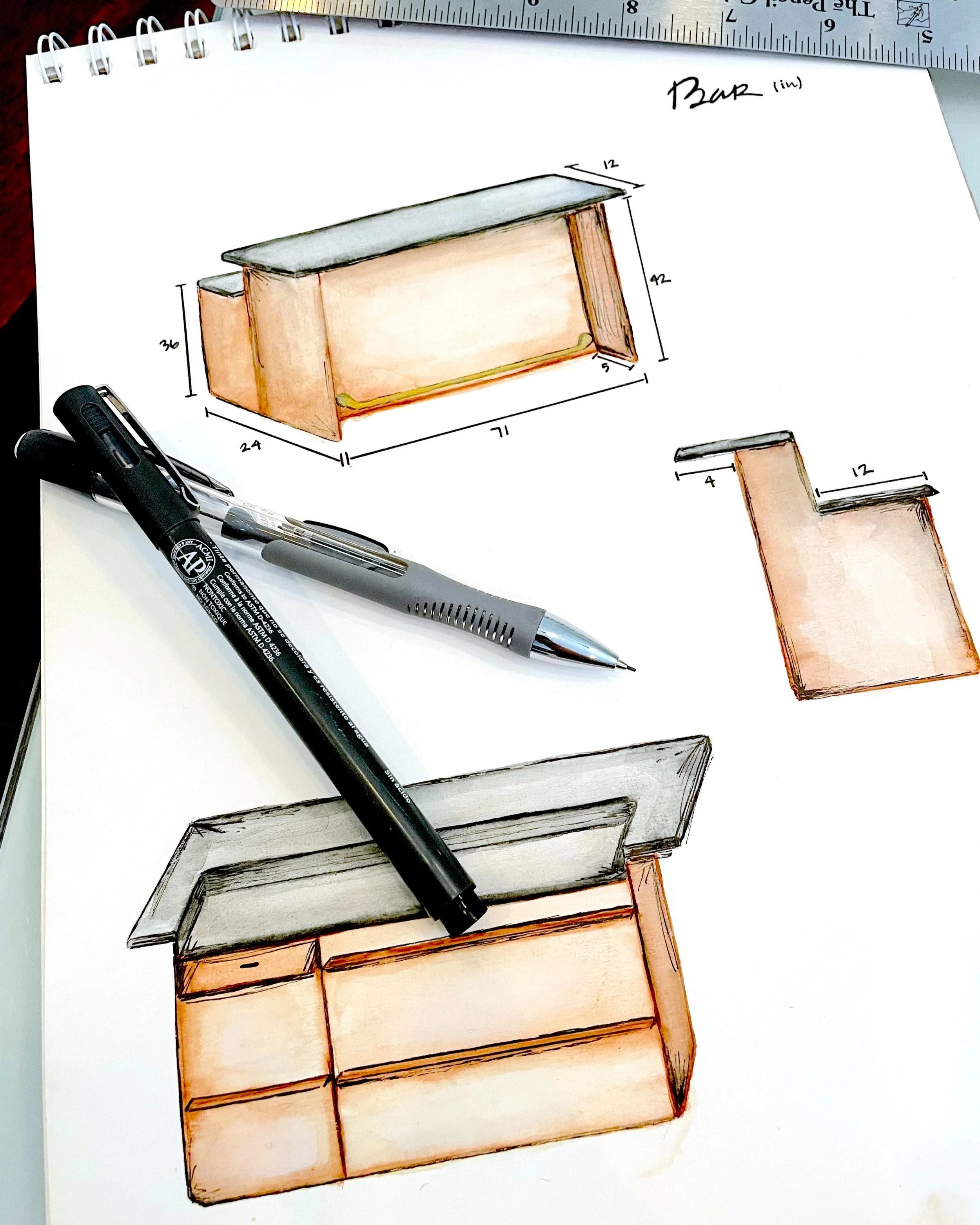 Knowing the impact that layout has on the flow of energy within a space, reorienting the primary seating area became the foundation of the project. In doing so, it also opened up a realm of possibilities along the backside of the room, where I envisioned the addition of a custom home bar area with complementary seating.